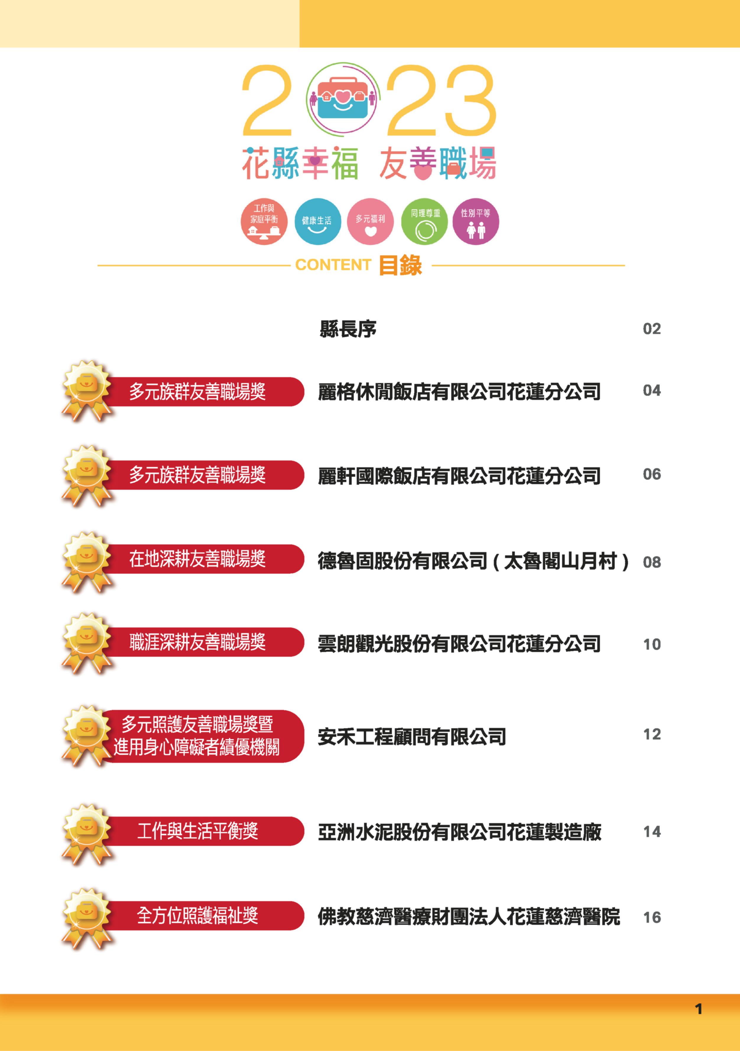 - 多元族群友善職場獎:麗格休閒飯店有限公司花蓮分公司