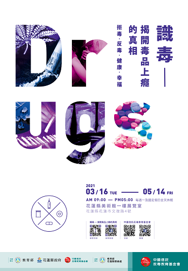 為推動防制藥物濫用宣導工作,花蓮縣聯絡處協助教育部與中國信託反毒教育基金會舉辦反毒教育特展,期能結合民間企業反毒的資源與能量,喚起花蓮地區民眾反毒意識。將反毒的教育宣導深植在觀展者心中,向大眾揭露毒品真相,不僅建立正確的反毒觀念、讓其對於新興毒品有進一步的認識。 時間:2021年3月16日至2021年5月14日。 地點:花蓮縣美術館一樓展覽館。(花蓮縣花蓮市文復路4號)