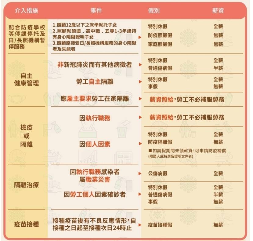 ※防疫期間勞工請假假別及薪資一覽表※