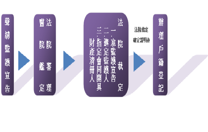 - 聲請人:本人、配偶、四親等內之親屬、最近一年有同居事實之其他親屬、檢察官、主管機關或社會福利機構。