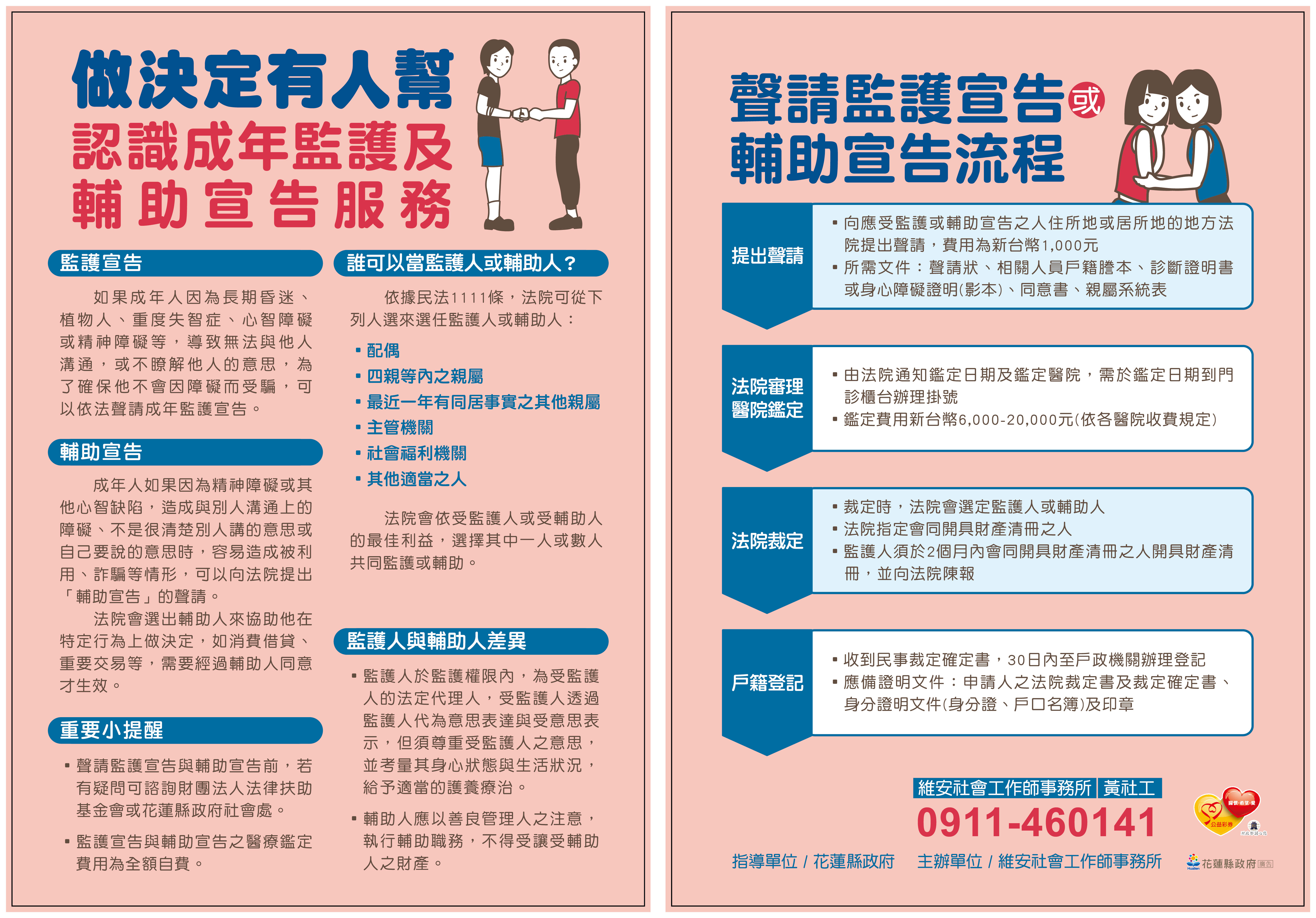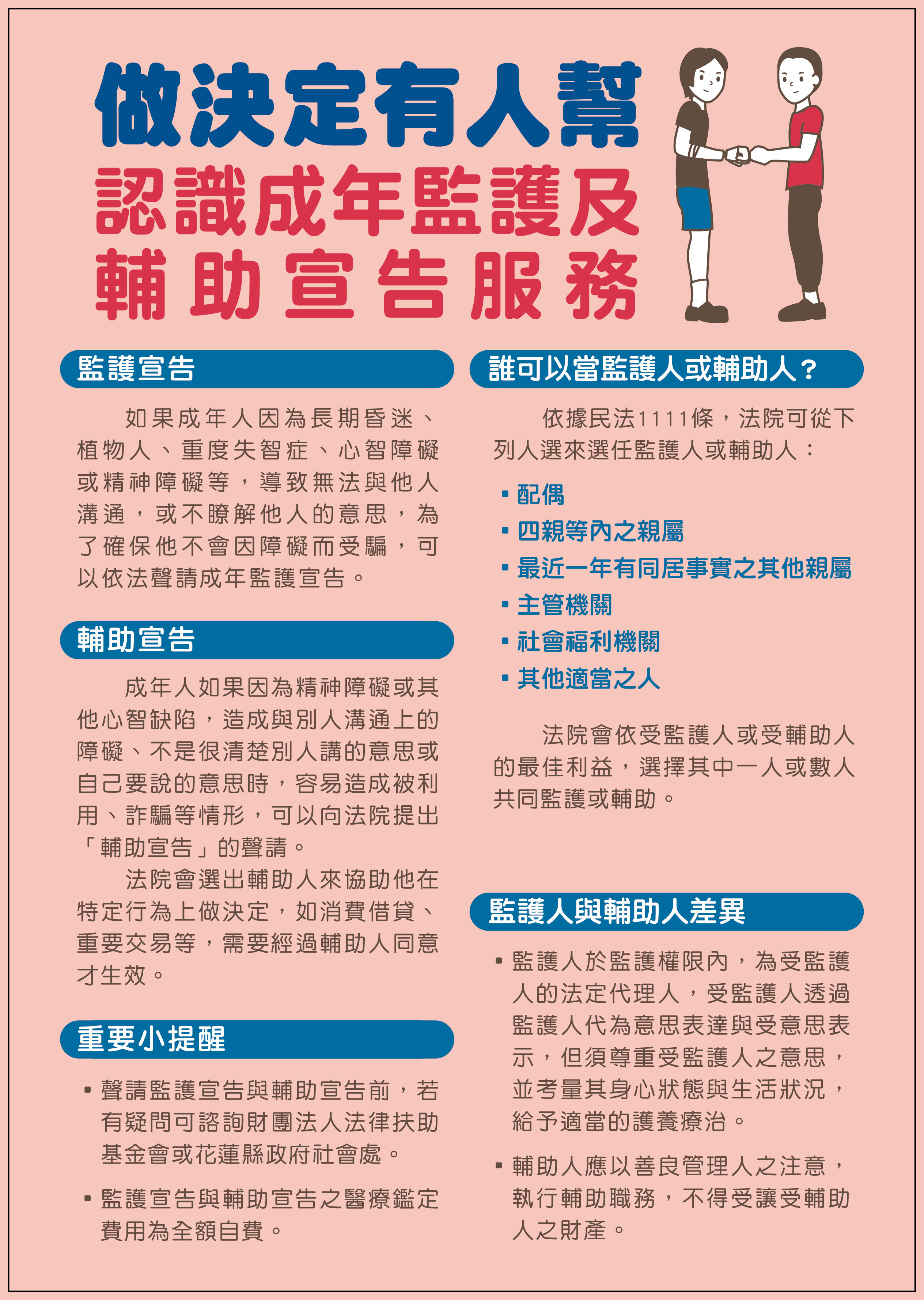 ◎花蓮縣身心障礙者成年監護及輔助宣告補助計畫