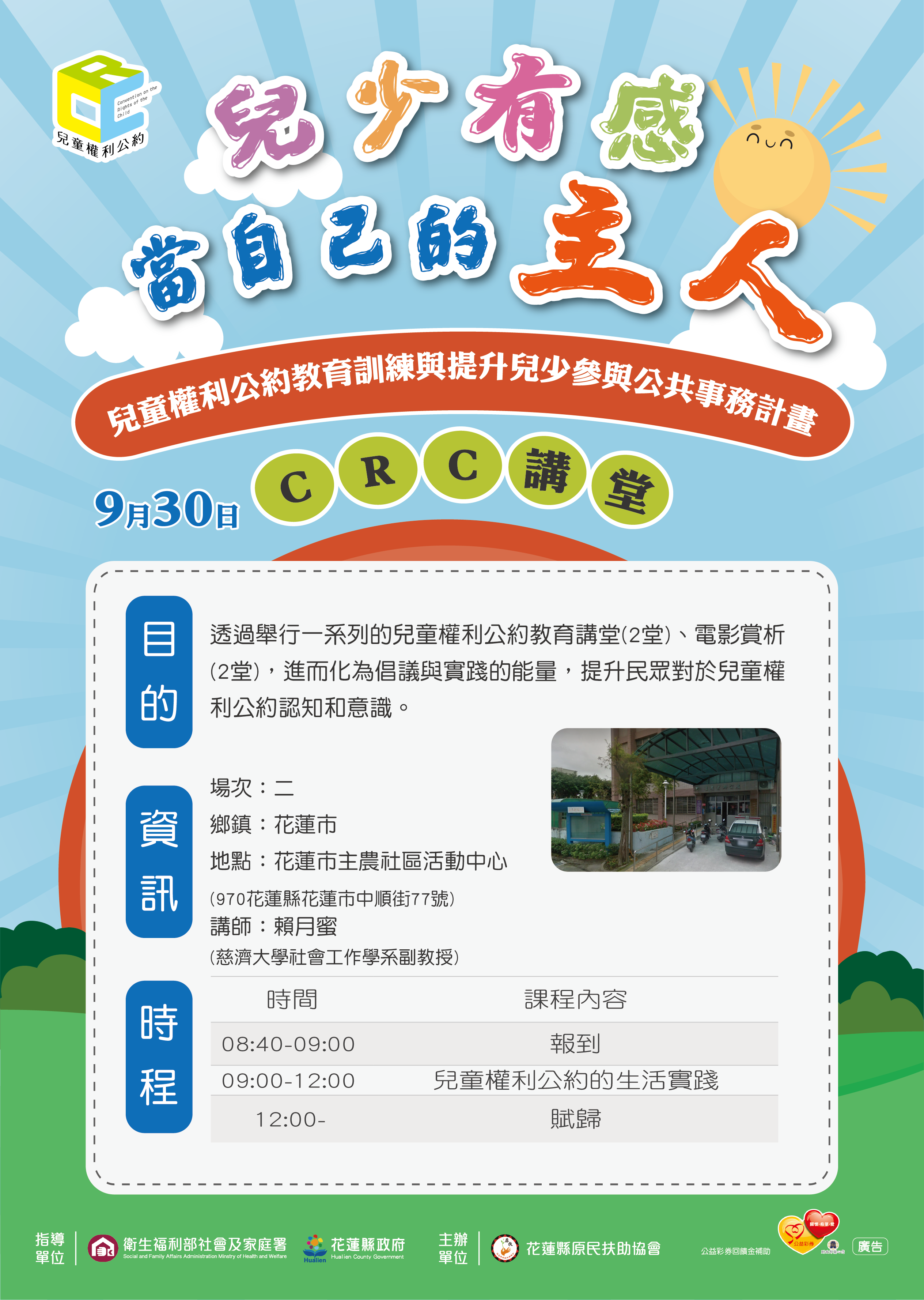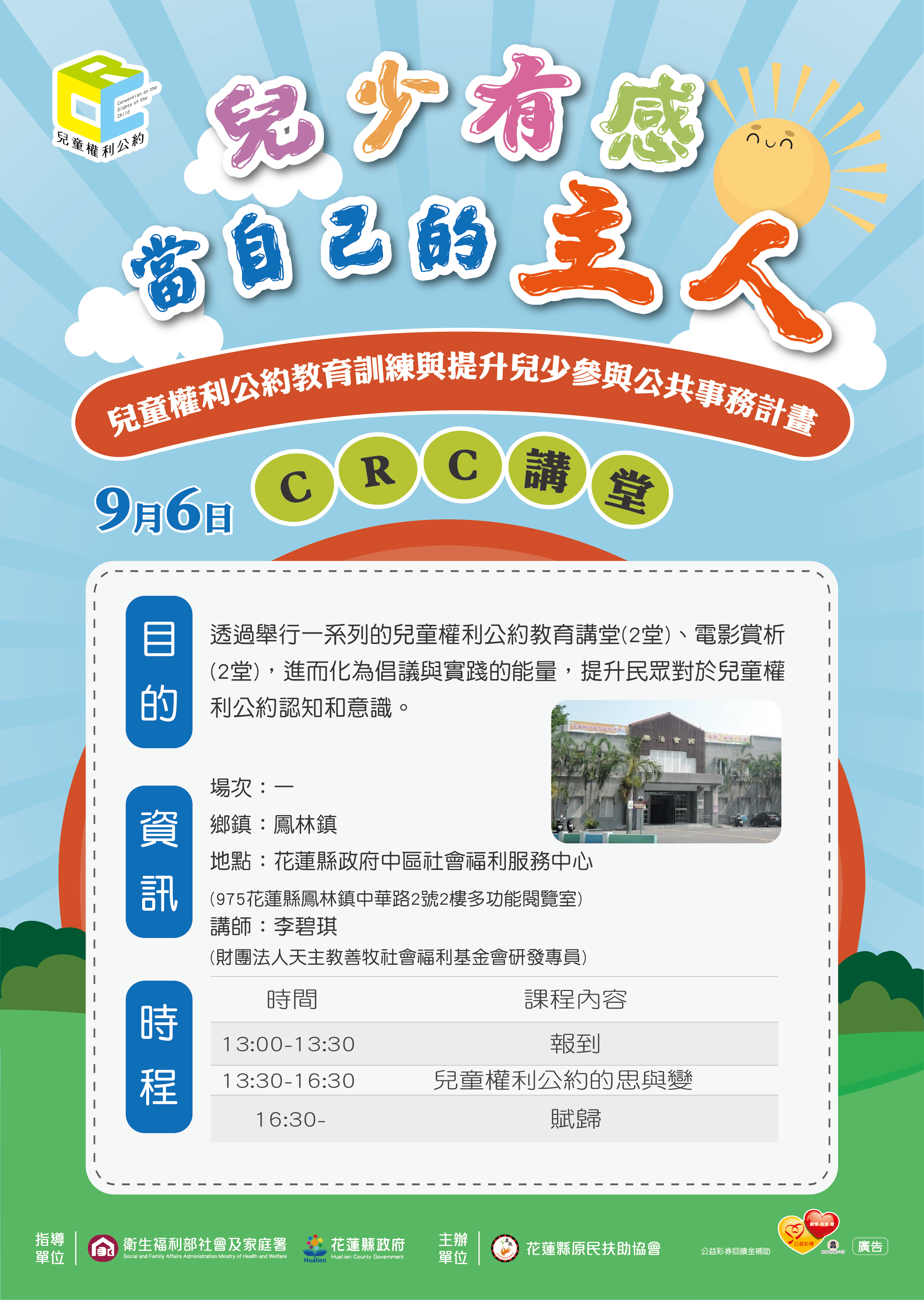 【活動公告】「兒少有感,當自己的主人」兒童權利公約教育訓練與提升兒少參與公共事務計畫-CRC講堂執行場次及相關報名資料