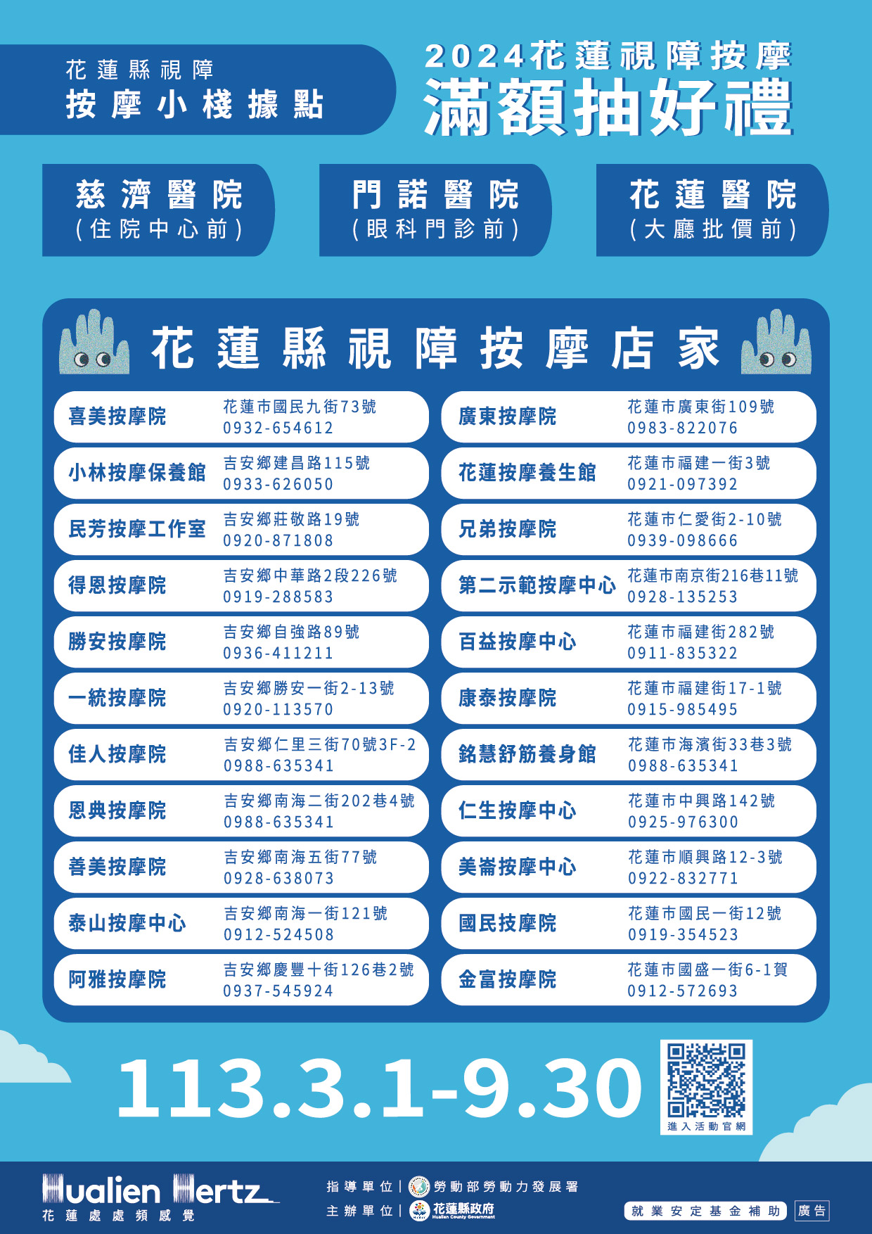 2.分享抽好禮,掃描本活動QR Code或搜尋113年花蓮視障按摩滿額抽好禮活動,點選連