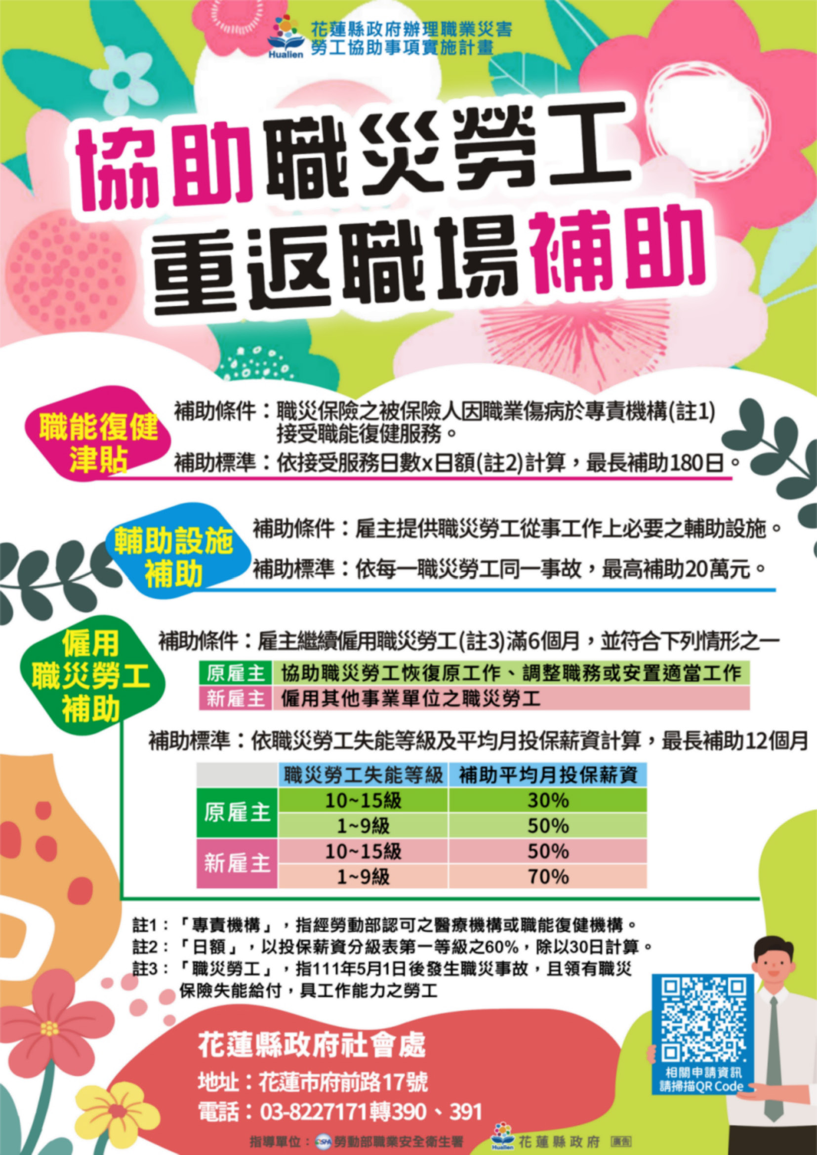 - 服務窗口:花蓮縣政府社會處勞資科 林小姐、許小姐
