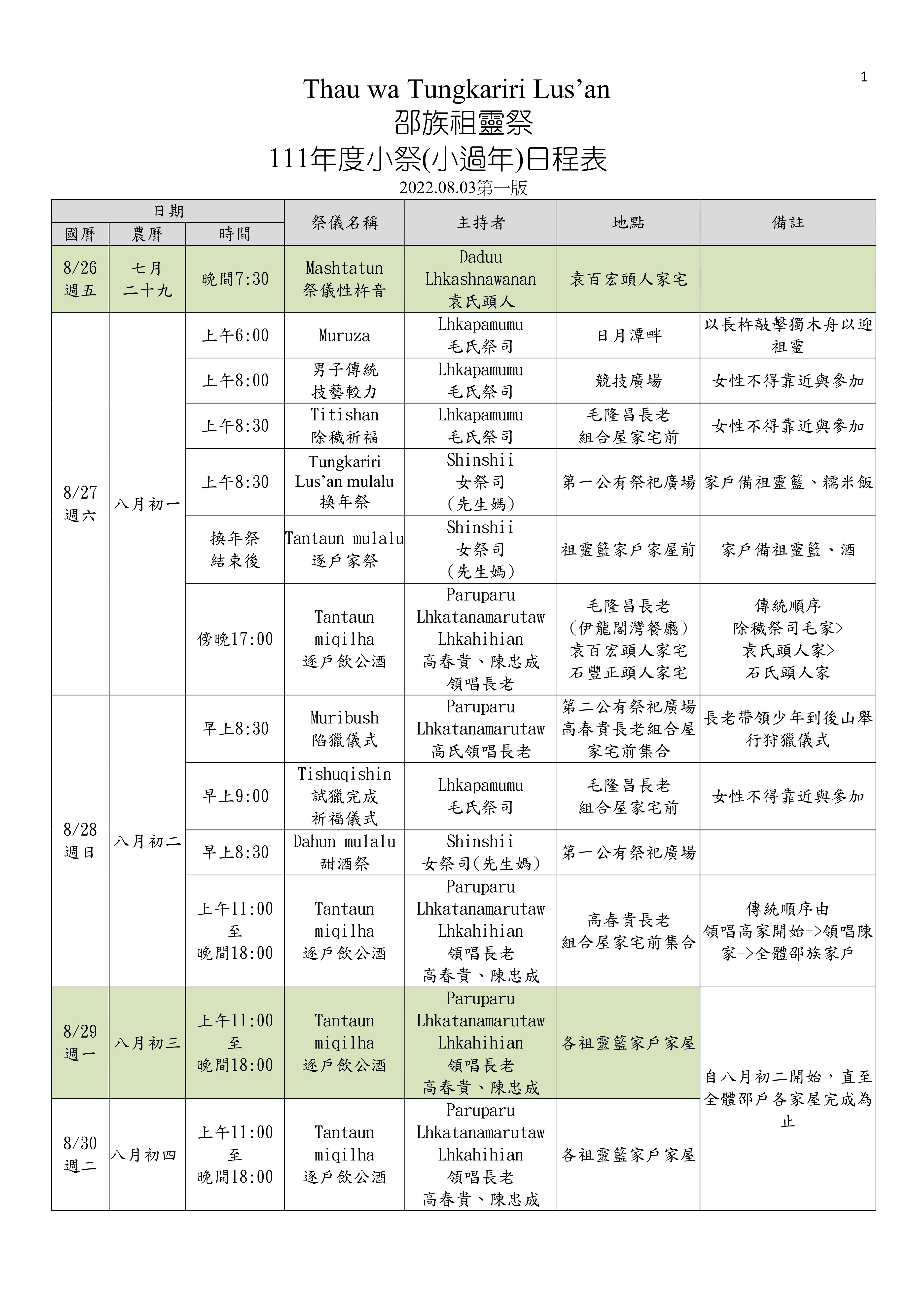 [轉知]勞動部函轉南投縣魚池鄉邵族文化發展協會函告111年度邵族祖靈祭相關事宜